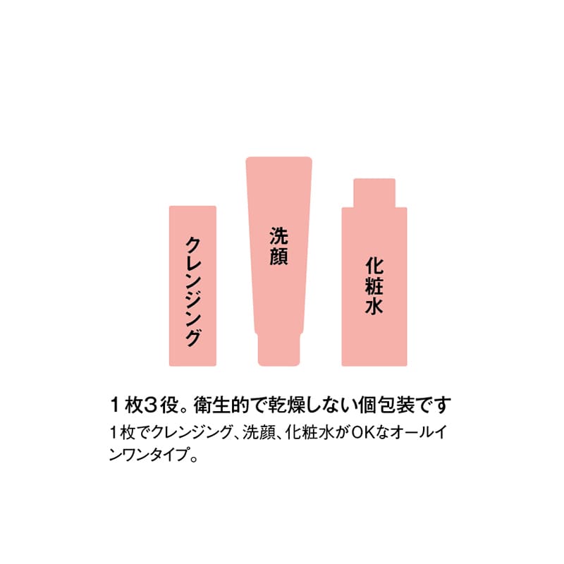 1枚でクレンジング・洗顔・化粧水がOK。個包装で携帯に便利