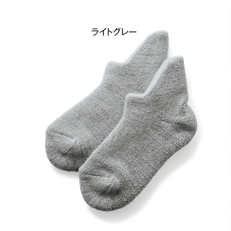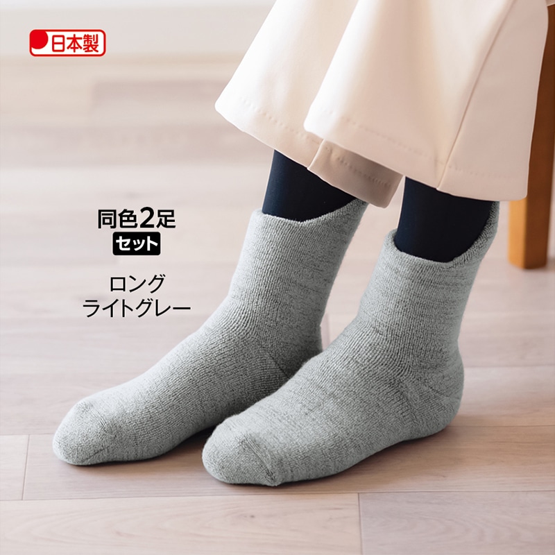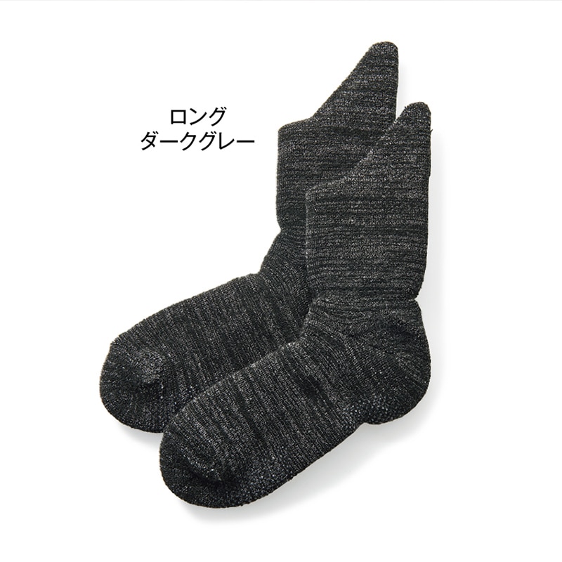 発熱する生地と備長炭素材の二重編み構造で足元を冷えから守ります。内側のつま先、かかと、足首部分に繊維自身が吸湿発熱する保温素材を使用。締め付け感もなく着脱も片手でラクに行えます。