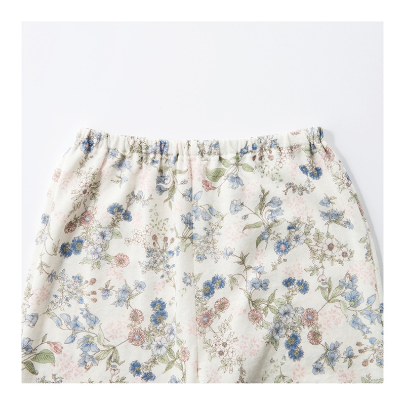 素材/本体:綿60%、ポリエステル40% 重ね布部:綿55%、ポリエステル25%、レーヨン20% 仕様/ウエストゴム、前ボタン留め、前ポケット、裏地無し、織物 インドネシア製 洗濯機OK(乾燥機不可)