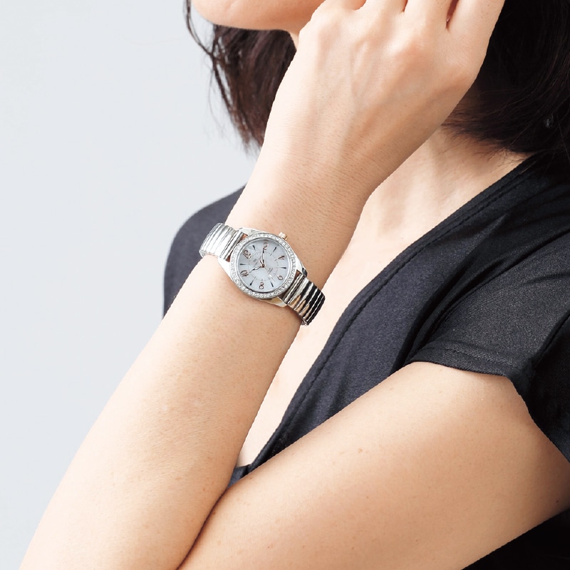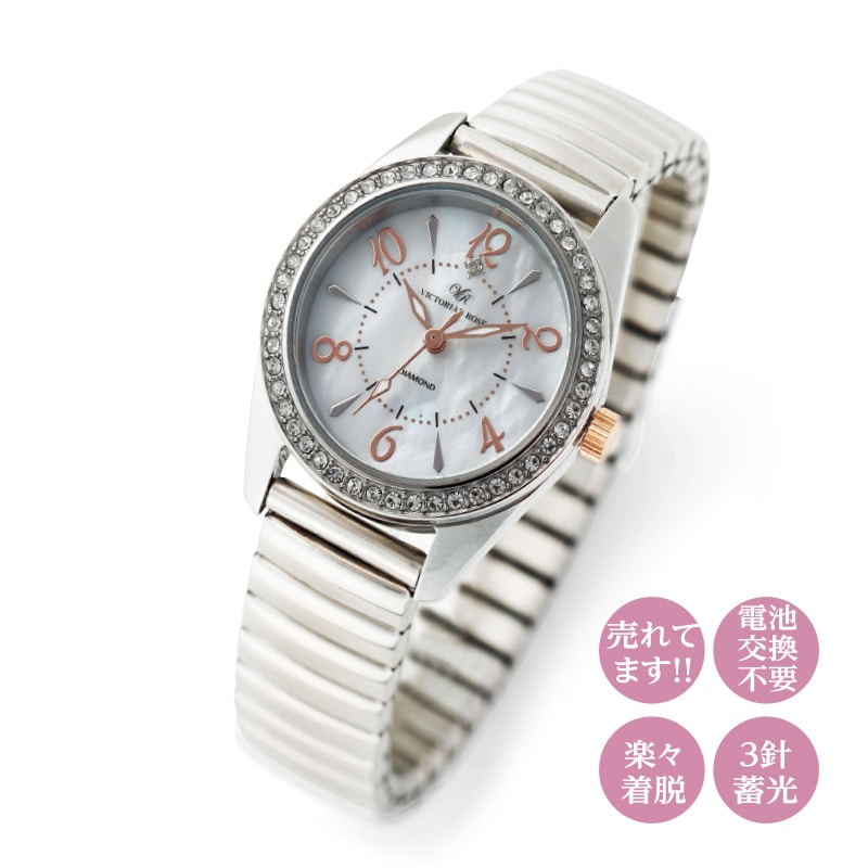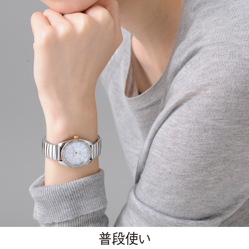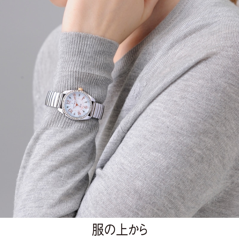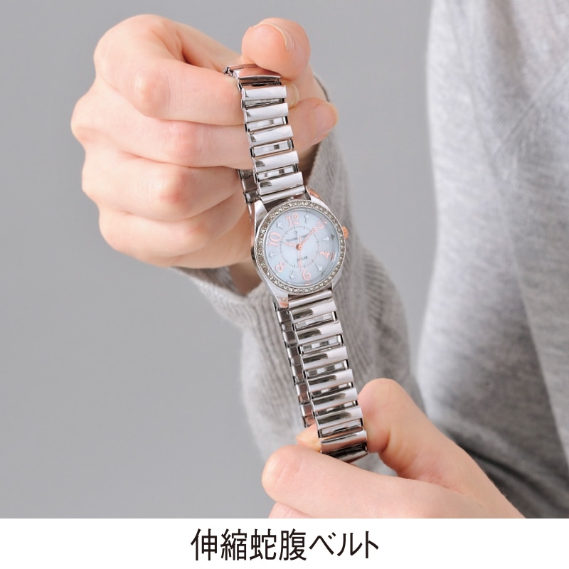 - サイズ調節の必要がない蛇腹式。電池交換不要の自然光で充電できるソーラームーブメント。天然シェルを使用した美しい文字盤、蓄光針で暗闇でも見やすい。贈り物にも喜ばれます。