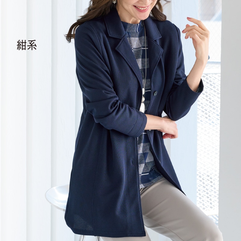 きちんと見えするテーラードジャケットアンサンブル。お手持ちのインナーとも合わせやすい一着です。