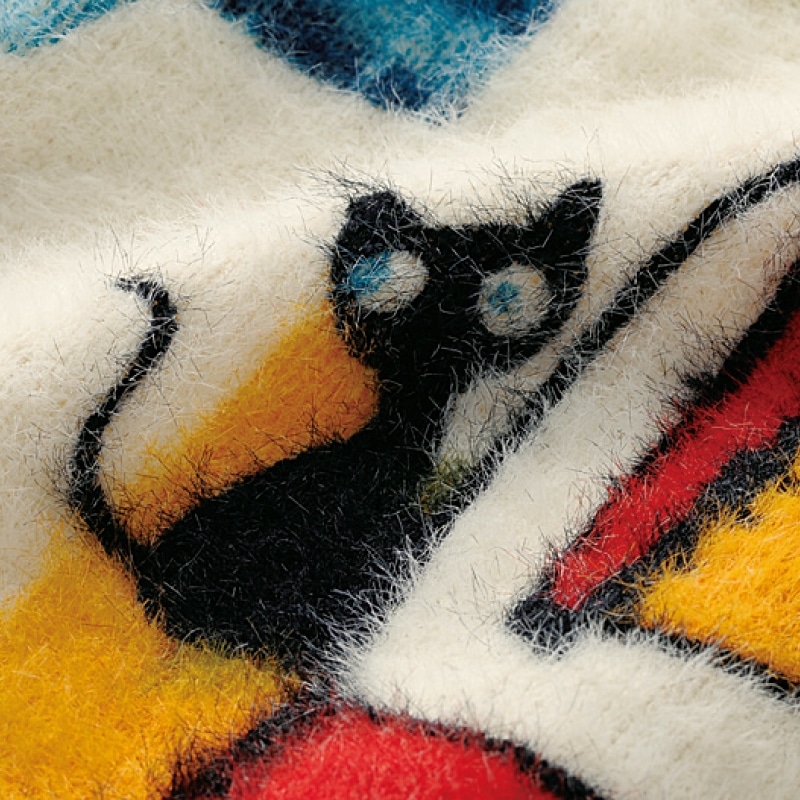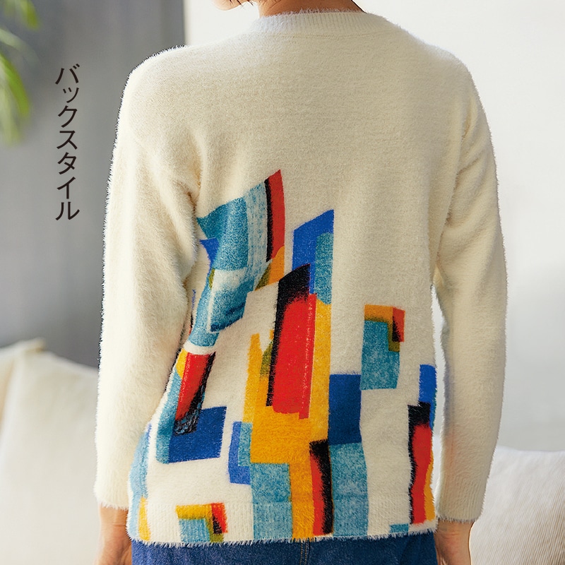 ふわふわとした毛足に温もりを感じるシャギーニット。発色のキレイなビビッドカラーが気分まで明るくしてくれます。