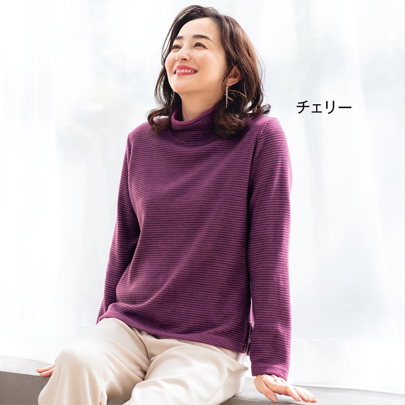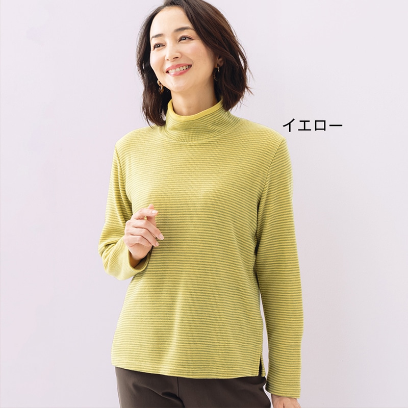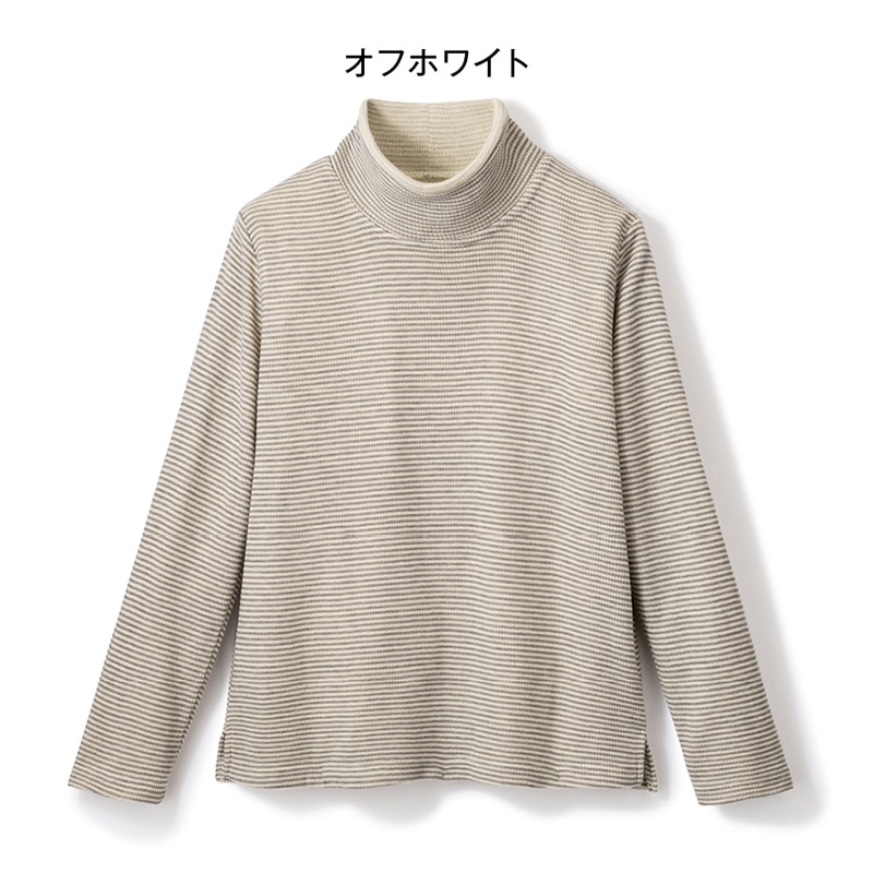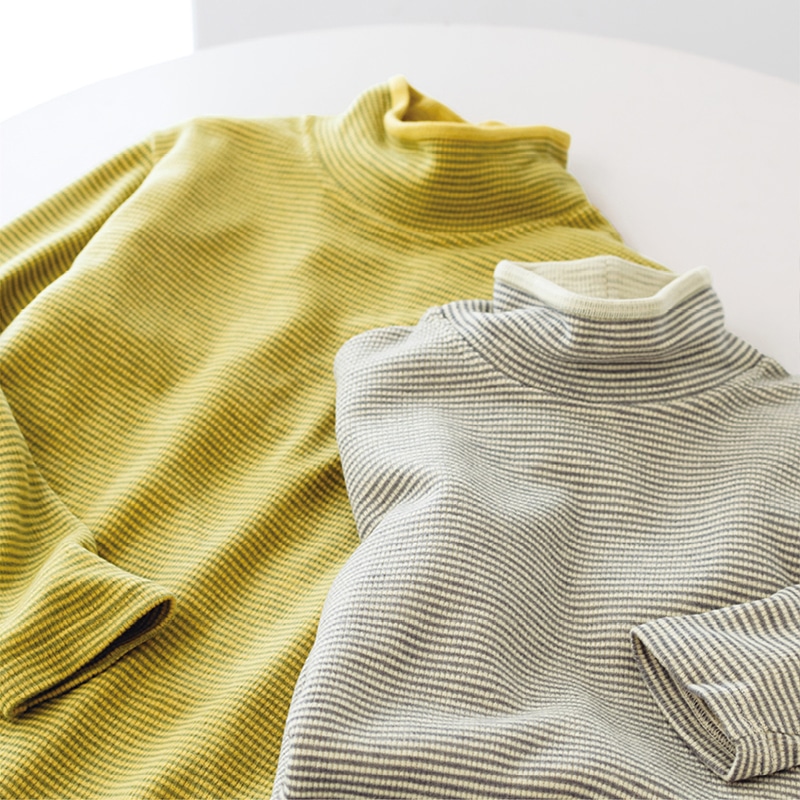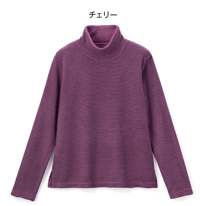 汗を吸収して自ら発熱する機能をもったハイネックT。湿気をコントロールし、暖房が効きすぎた場所でもムレ知らずで衣服内はサラッと快適。微起毛でしなやかな肌ざわりです。
