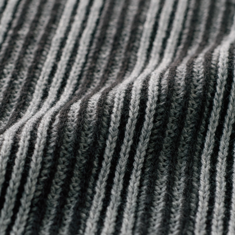 継ぎ目がなく、ここちよく着られるホールガーメントのセーター。コントラストの効いたストライプ柄で、縦長を強調しつつ凜としたモダンな印象に。