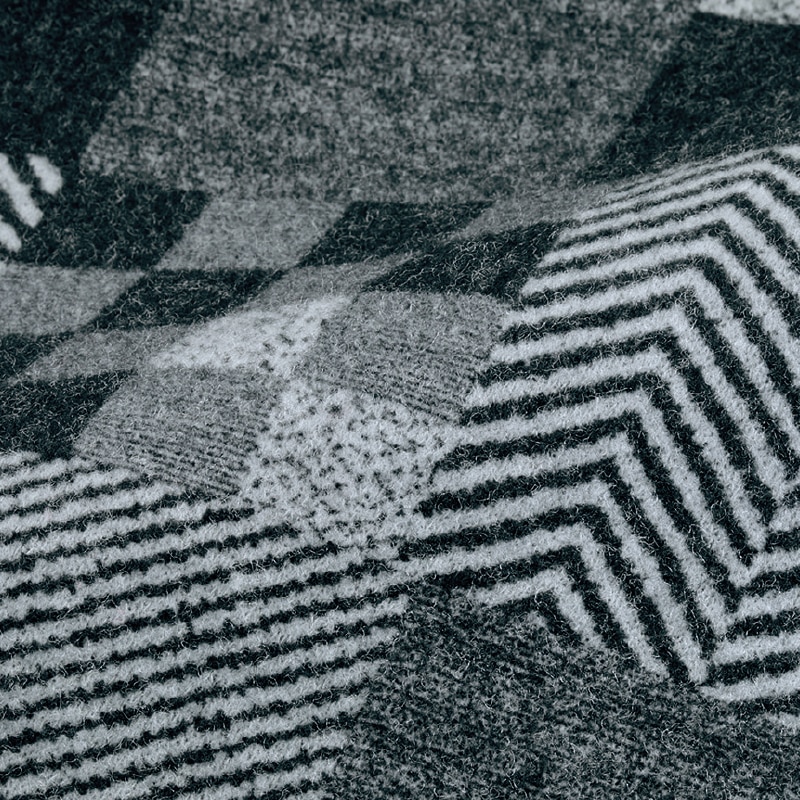 グレートーンのパッチワーク風プリントを効かせた着映え力が高い一着。ピタピタしないハイネックにボタンをあしらい首元のアクセントに。ロング丈だからヒップまわりまであたたかです。