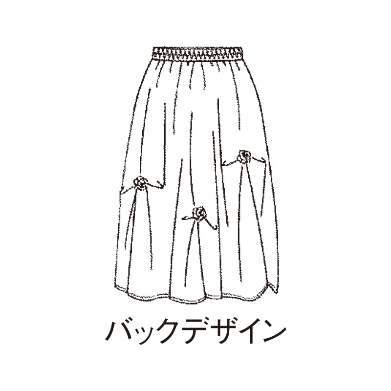 シルエットがきれいな膝丈の上品スカートに、小さなバラを飾って華やかに。つぼみのようなタックも優しげで、エレガントな着こなしが決まります。