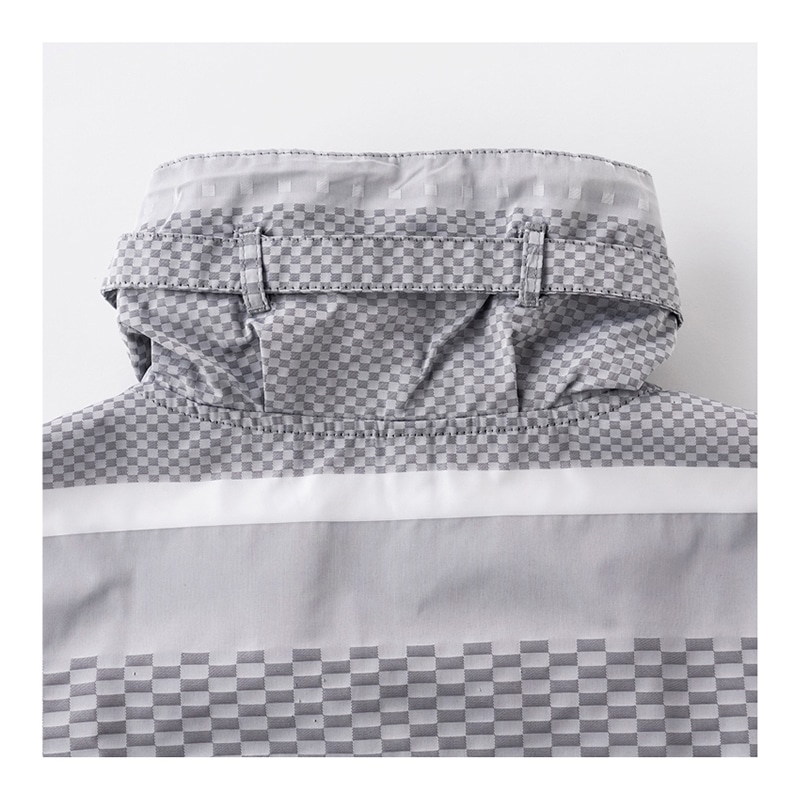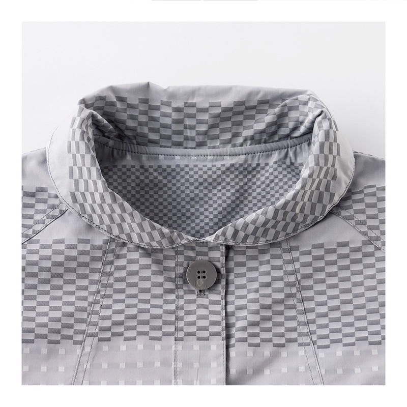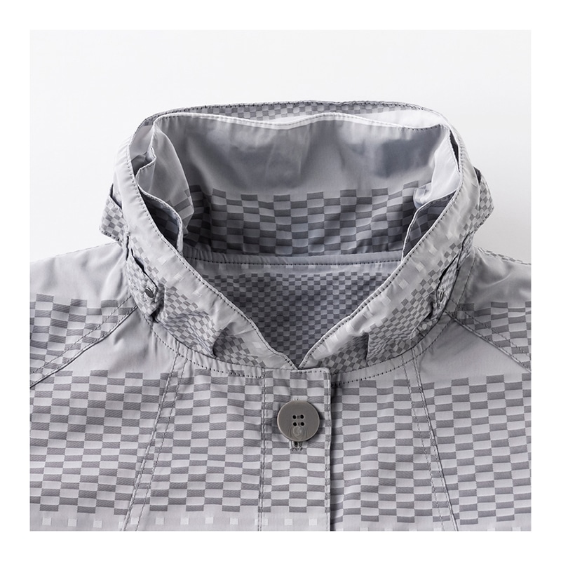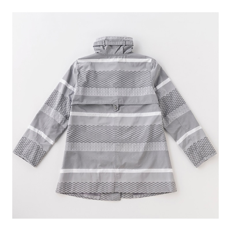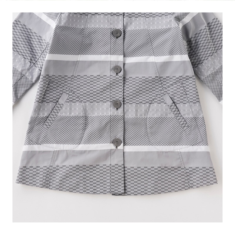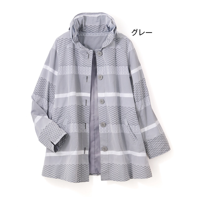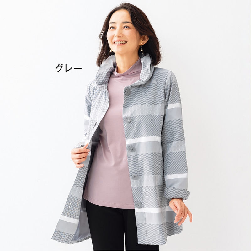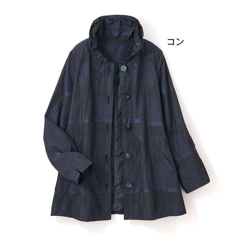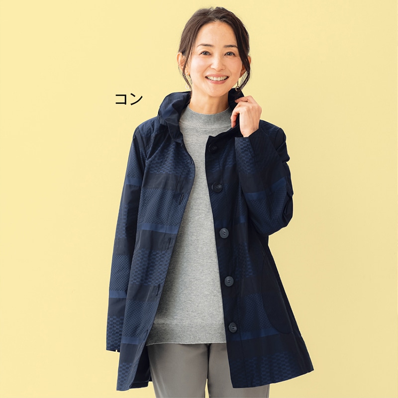 一重で軽く、たたみジワもサッと戻り携帯に便利。風を通さず、おしりまで覆うミドル丈です。コートにはまだ早い季節の防寒に。