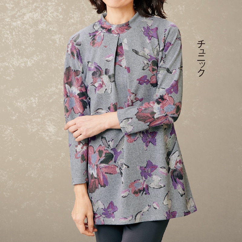 セット内容/カーディガン、チュニック 色/ローズパープル×グレー 素材/ポリエステル95%、ポリウレタン5% ※生産の都合により柄の出方が異なる場合があります。※この商品は他のものと一緒に洗わないでください。※アクセサリー、ボトムス、バッグは商品に含まれません。中国製 手洗い