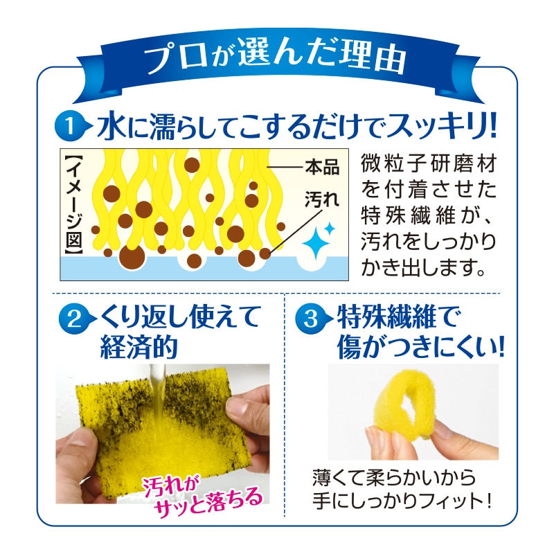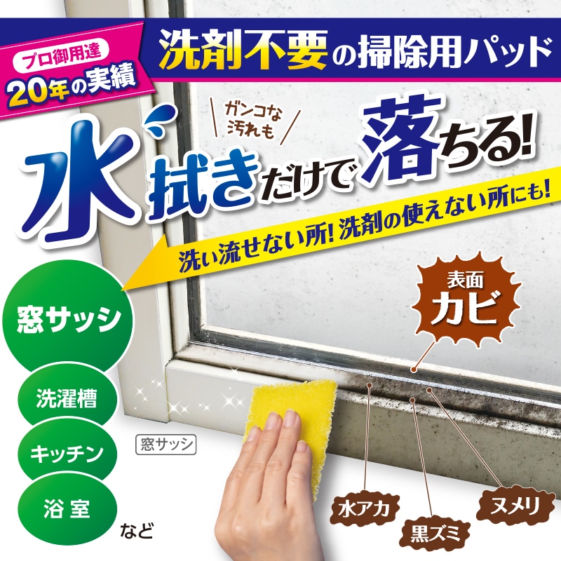 - セット内容/2枚入×2個組 サイズ(1枚当たり・約)/6.5×9×(厚み)0.9cm 材質/ナイロン不織布(微粒子研磨剤入) 耐熱温度/100度 セット組商品は一部での返品・交換不可 日本製 ※長期間放置して深く根付いたカビ汚れやこびりついた汚れ等、汚れによっては落ちない場合があります。【使えないもの】くもり止め加工・防水加工・コーティング加工等の表面に特殊加工が施されたもの(鏡・窓ガラス・ステンレス等)、水性ペンキ、うるし、ニス塗り、畳、しんちゅう、木製品、液晶画面、車・バイク・自転車の塗装面、光沢のあるもの。※すべての菌を抗菌するわけではありません。