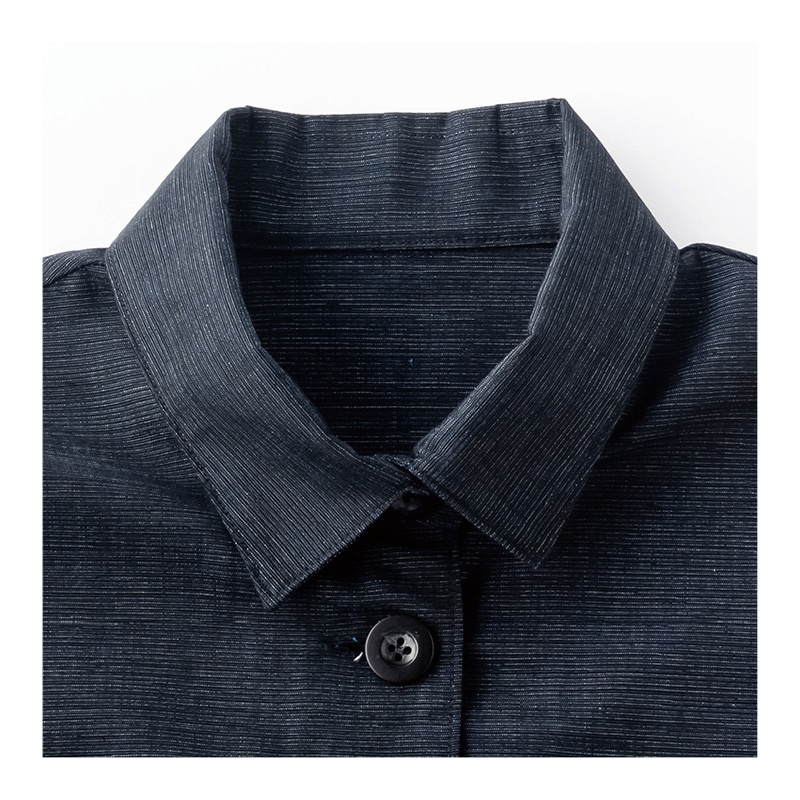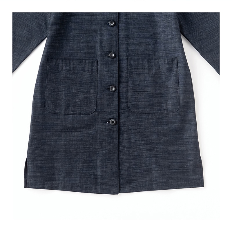 やや厚めで張りのある生地に、ほんのりとした光沢が上品。気軽に羽織れて、チュニックとしても活躍します。パンツとのバランスがきれいに見える、ひざ上丈を追求しました。