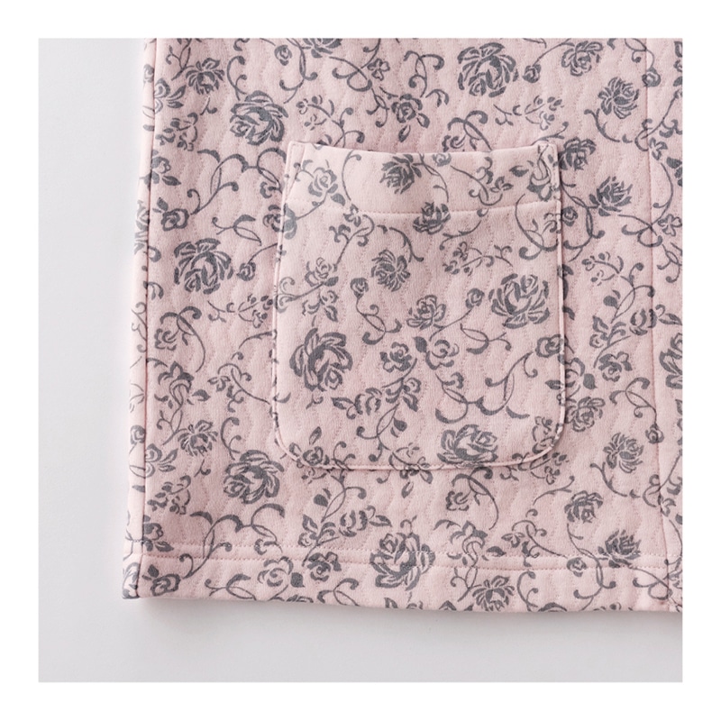 肌にあたる面は綿100%でふわりとした肌触りが気持ちいいソフトキルト素材。中綿入りで暖かく、適度な厚みで着心地も軽いから秋から真冬に向かうこの時期に最適。150cm前後の方におすすめです。