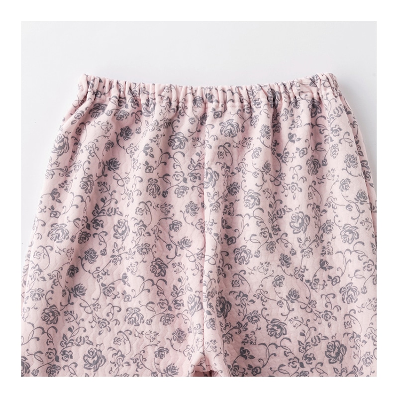 素材/表側:綿100% 中わた:ポリエステル100% 裏側:綿100% 仕様/前:ボタン留め、ポケット、右前下ポケット1個 ウエスト:総ゴム (取替口有り) 日本製 洗濯機