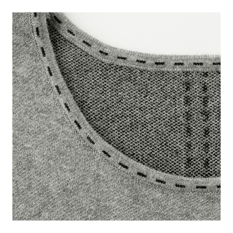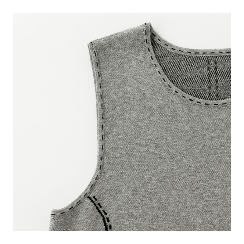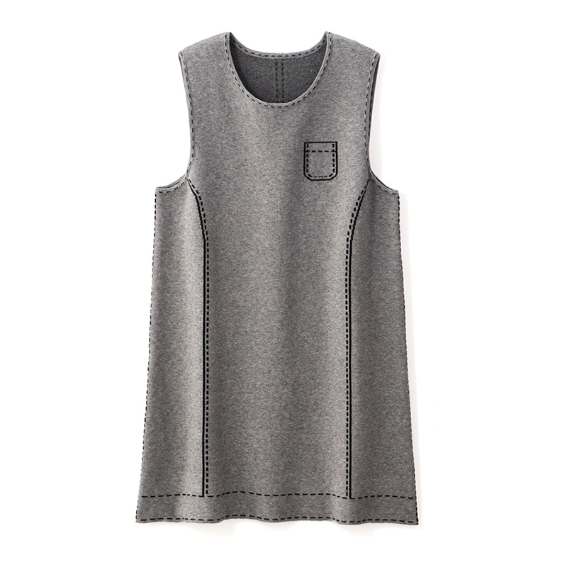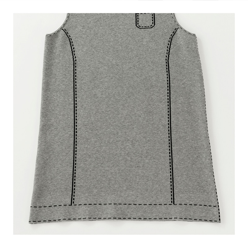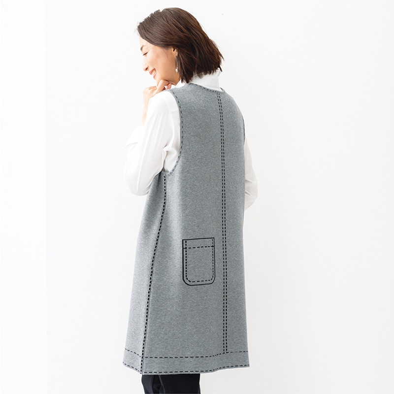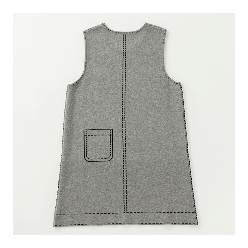 トロンプルイユ(だまし絵)ステッチですっきり見えときちんと感を演出できるジャンパードレス。バックスタイルも腰高美シルエットに。しっとりと柔らかいニットで肌触りも抜群です。パンツとのバランスがきれいに決まるひざ上丈ですっきり。
