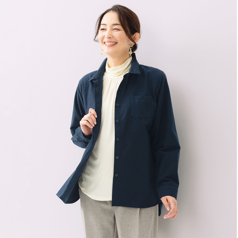微起毛でほんのりあったか。きちんと見える羽織シャツ