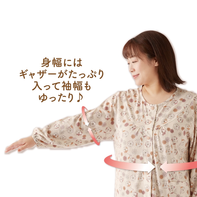 身幅にはギャザーがたっぷり入って袖幅もゆったり