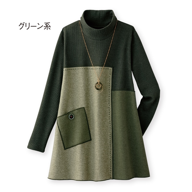 前身ごろを同系色の別布で切替えたチュニックです。個性的なデザインでシックな印象の一枚です。