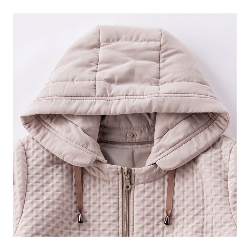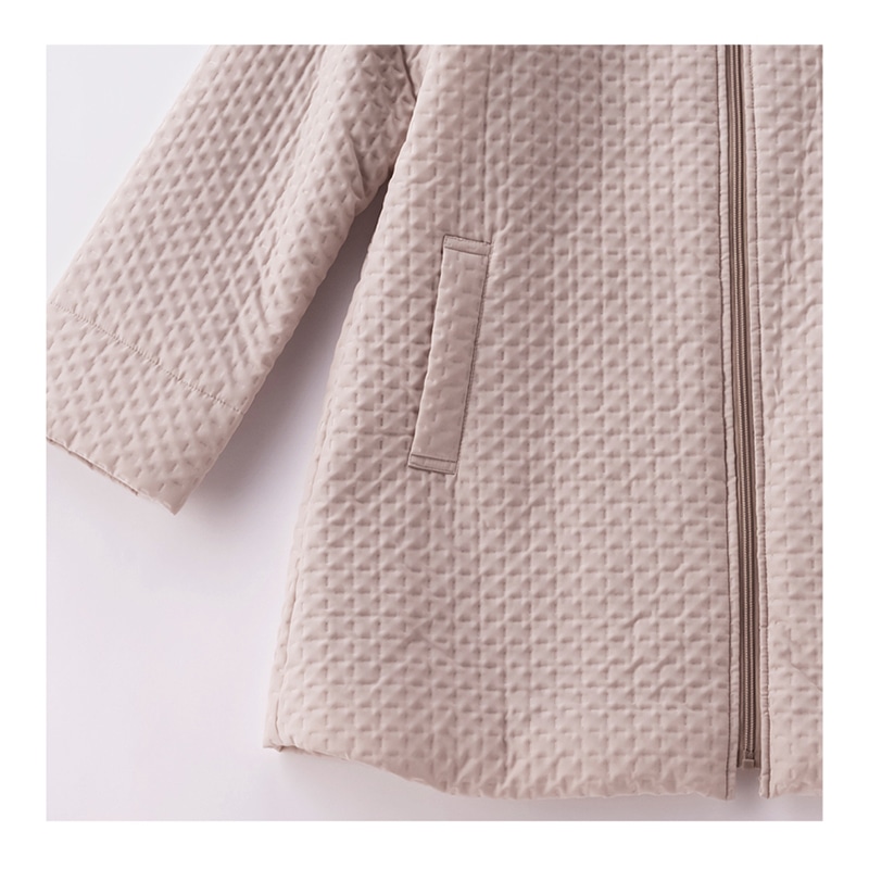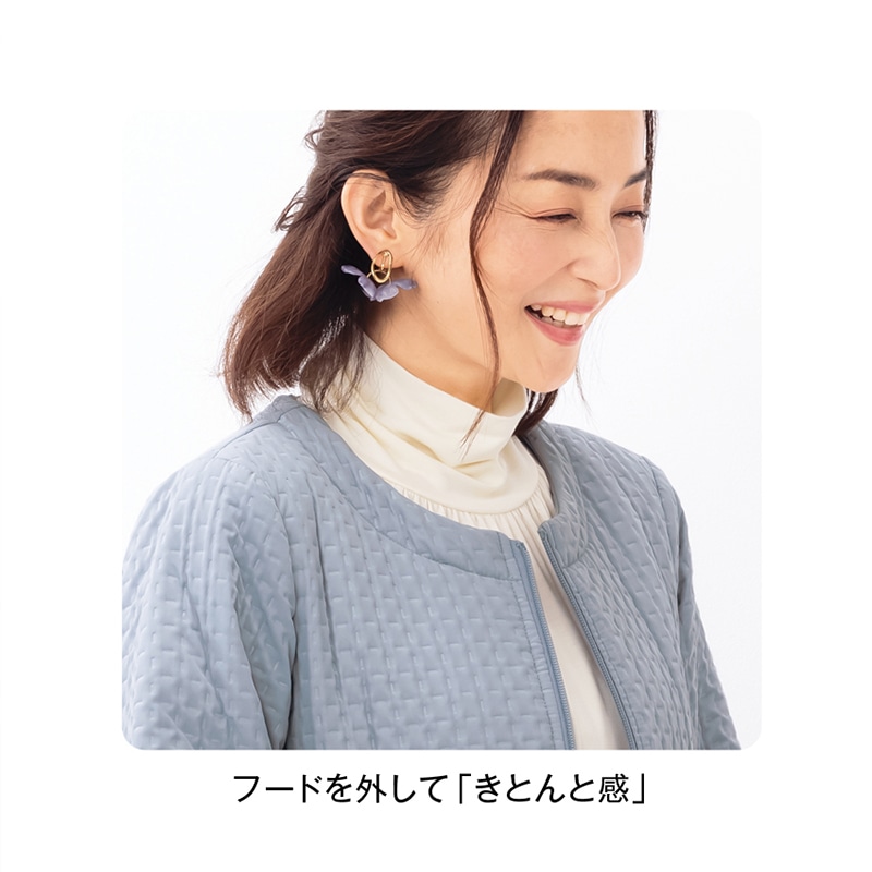 薄くて軽いから動きやすくラク。しかも圧着加工が冷たい外気の侵入を防ぎます。デザインもすっきりとシンプルで、どんなコーデにもパッと羽織れます。フードを外せば春先まで活躍。