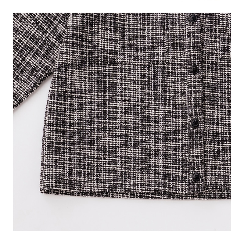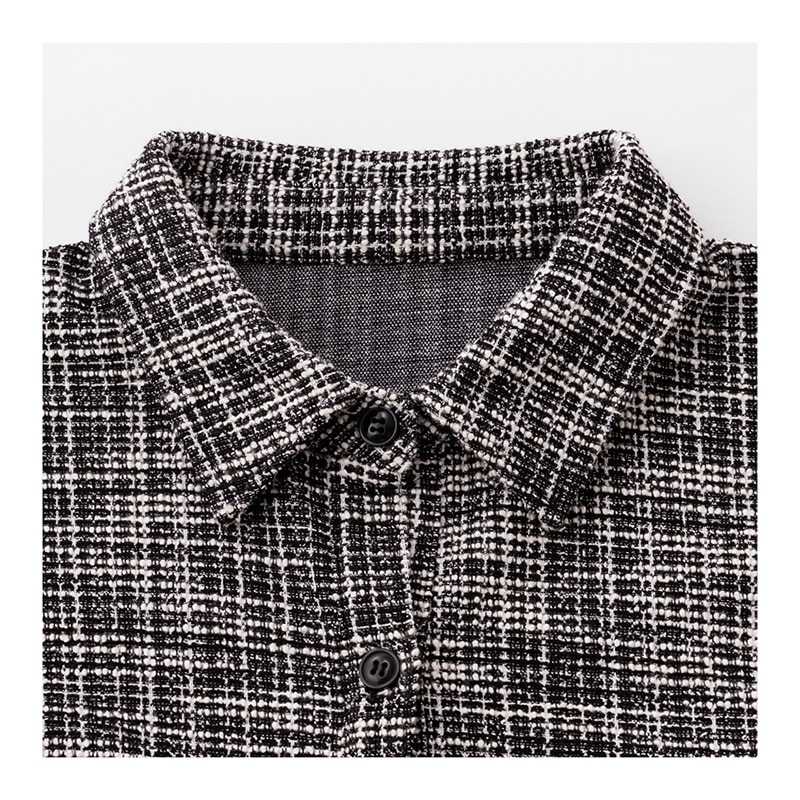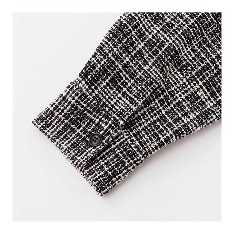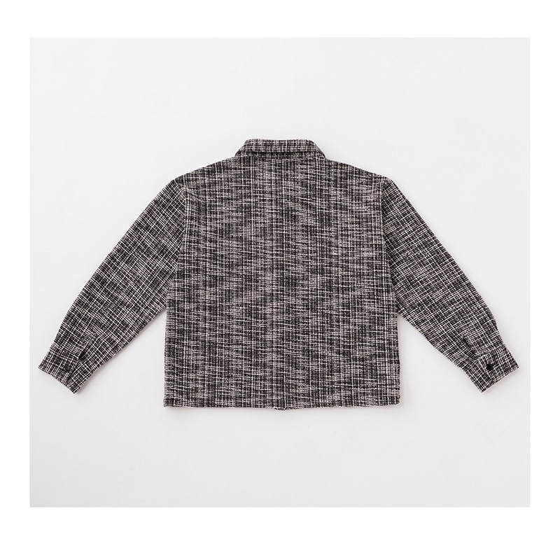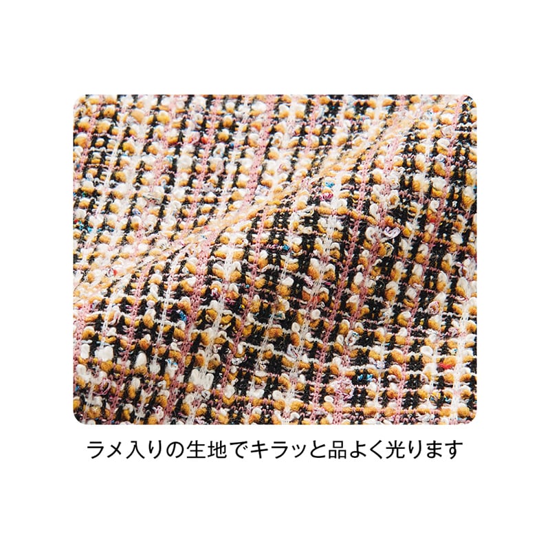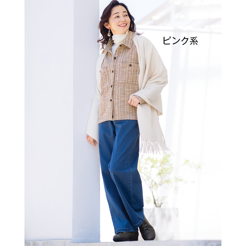 コートほどの重さはなく、 カーディガンより肉厚な生 地は寒くなる一歩手前の 時期に重宝。伸びるツイー ド生地でちょっとしたおで かけの日にも映えます。