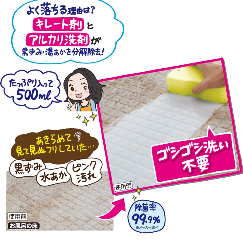 - よく落ちる理由は?キレート剤とアルカリ洗剤が黒ずみ・湯あかを分解除去!
