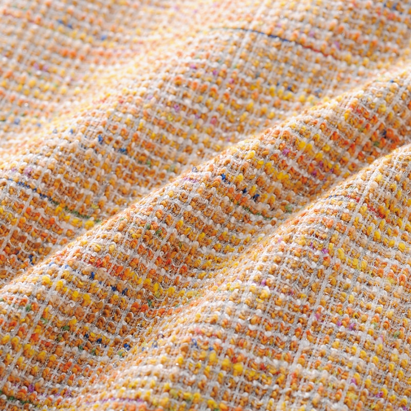 綺麗な彩りにほんのりラメも煌めいて、顔映りを明るくしてくれるツイードジャケット。ストレッチが効いて動きやすく、エレガントに着映えます。