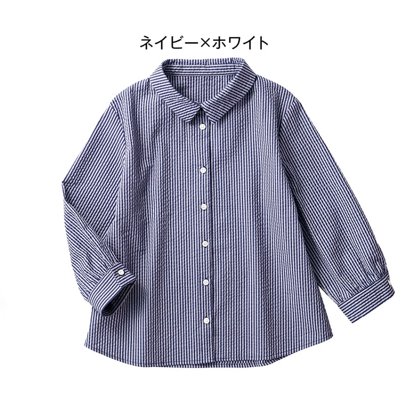 2本の細いストライプが爽やかな印象。ハリがあってシワになりにくいから、ジャケット感覚でトップスに重ねても素敵です。