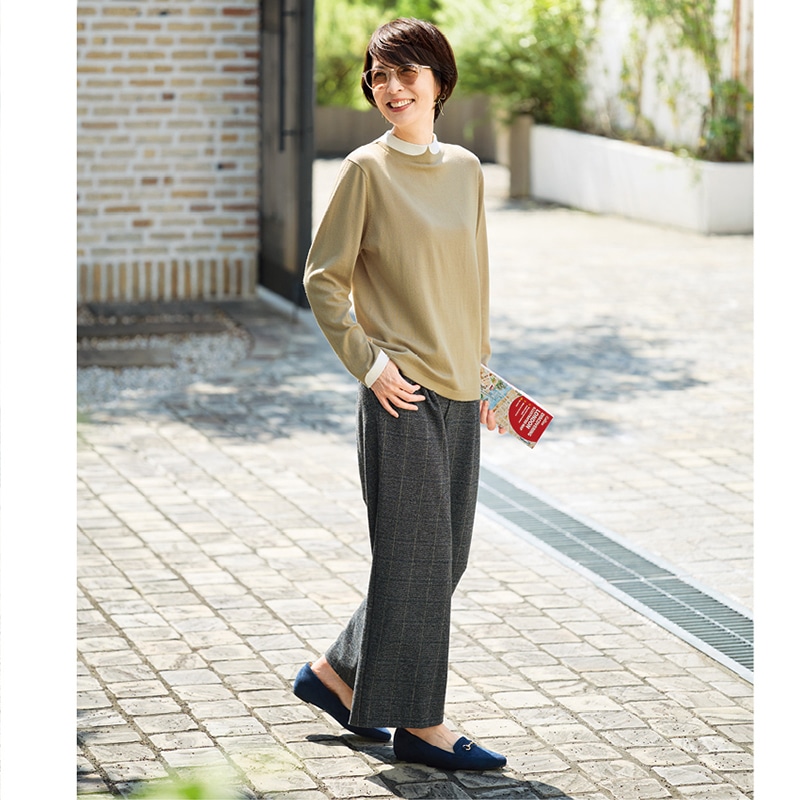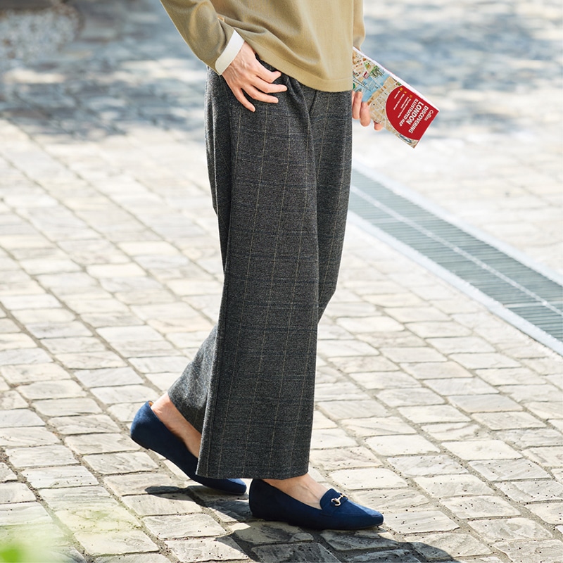 太すぎないシルエットでスラッときれい見えするパンツ。伸縮性のある動きやすい生地で、おなかやお尻などをすっきりとカバーするから1枚あると重宝します。