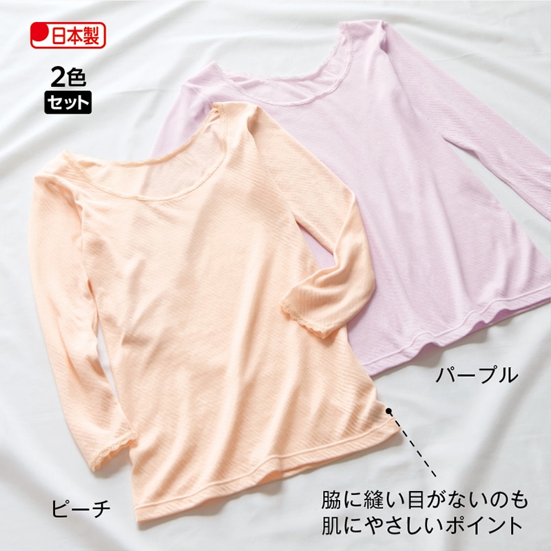 - セット内容/パープル・ピーチ各1枚 素材/身生地:綿100% レース部分:ナイロン、ポリウレタン 未使用品であっても、セット組商品は一部での返品不可。 日本製 *単位(cm) *カッコ内の数値は適応サイズ。洗濯機(ネット使用)未開封に限り返品・交換を承ります。