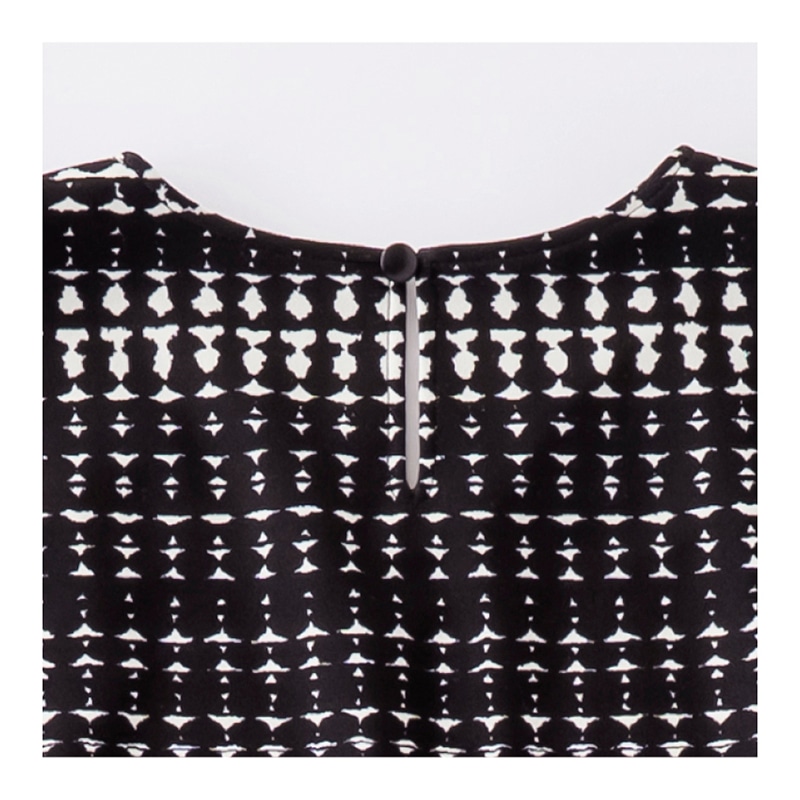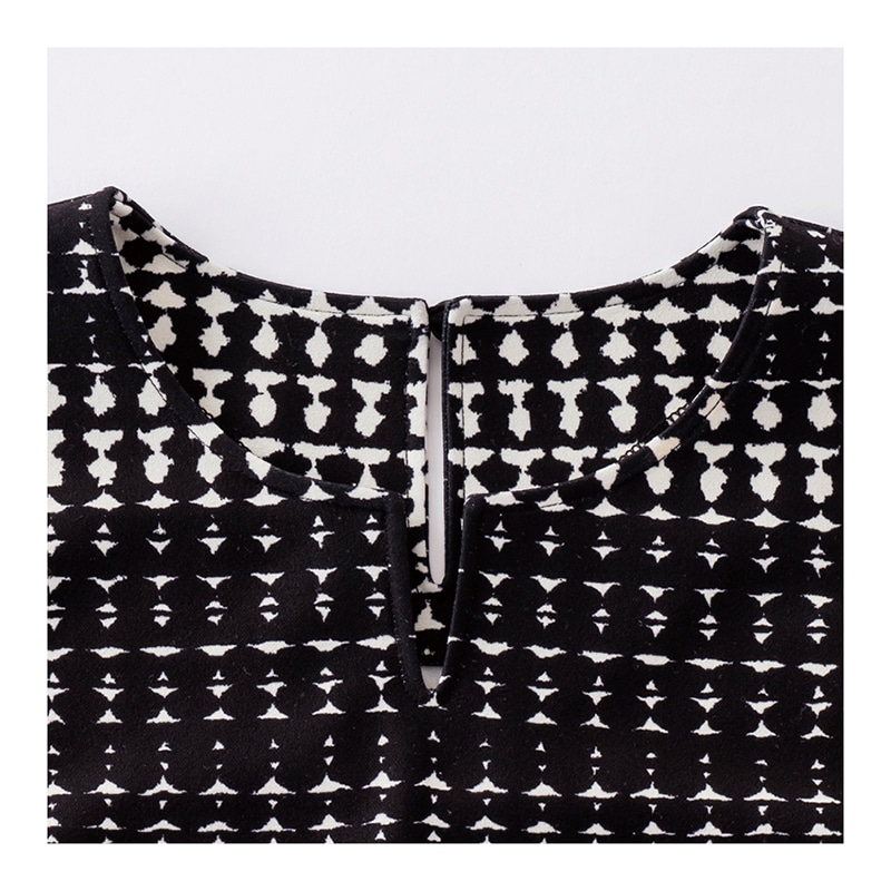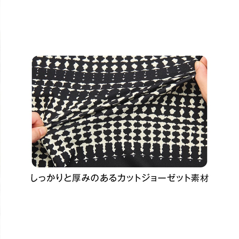 首元にスリットが入り、さっとかぶるだけのワンピース。ウエストの切り替えギャザーでより女性らしいシルエットです。少し寒くなったらタートルネックを合わせても素敵。