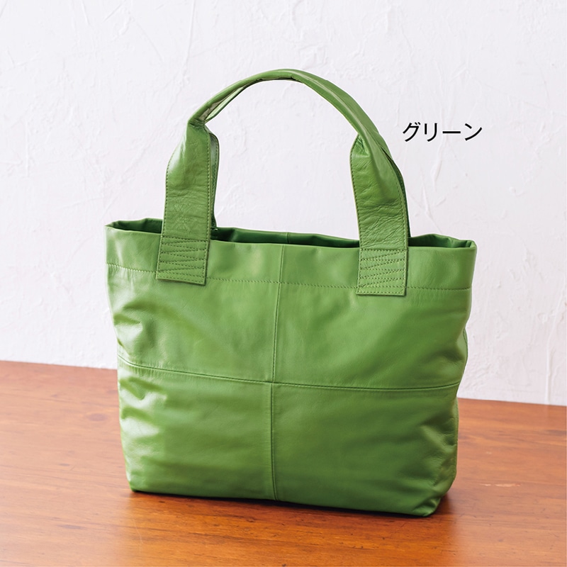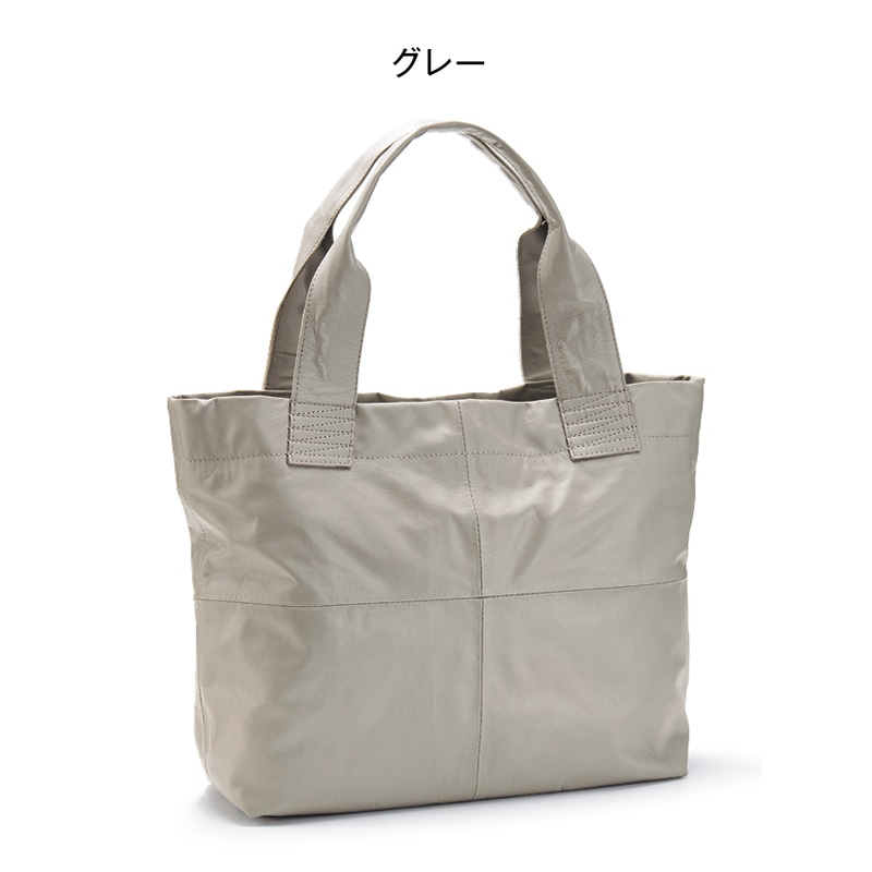 レザーなのに超軽量なA4サイズのトートバッグ。なめらかな山羊革を使用し、肩掛けできるハンドル長がデイリー使いに活躍間違いなし。秋冬の重くなりがちなコーディネートを明るく見せるグリーンとグレー、シーンを選ばず使えるベーシックな黒は一つあると便利です。