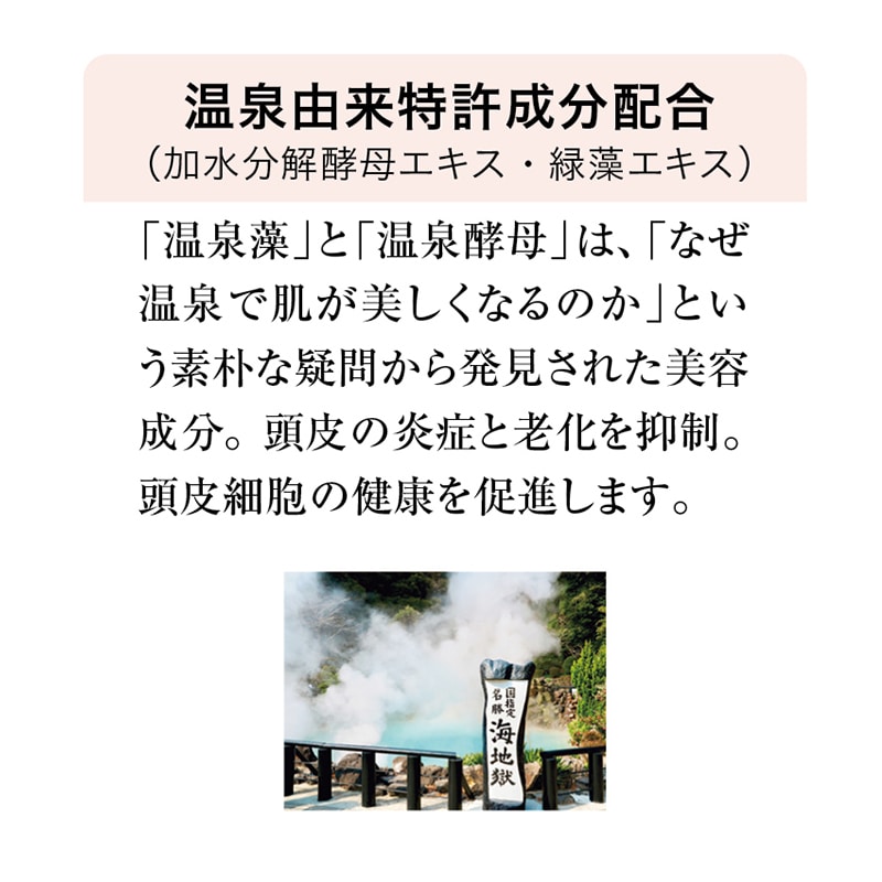 毎日洗う髪だから頭皮にいいものを 年齢による髪の悩みに・・・ 温泉成分で頭皮ケア