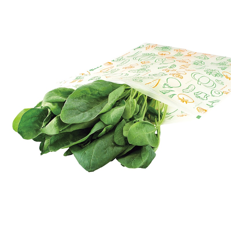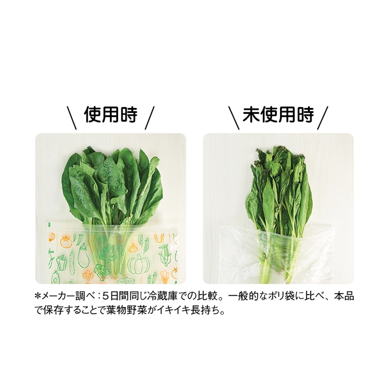 米ぬかの成分が持つ抗菌・抗酸化作用で野菜や果物の鮮度を長持ちさせる保存袋です。いたみやすい葉物野菜がシャキッと長持ちするから、使い残しや買いだめなどのうれしい味方に。たっぷり入る大きめサイズで、洗って繰り返し使えます