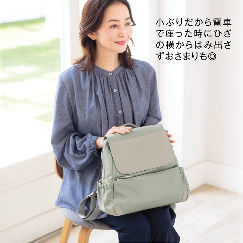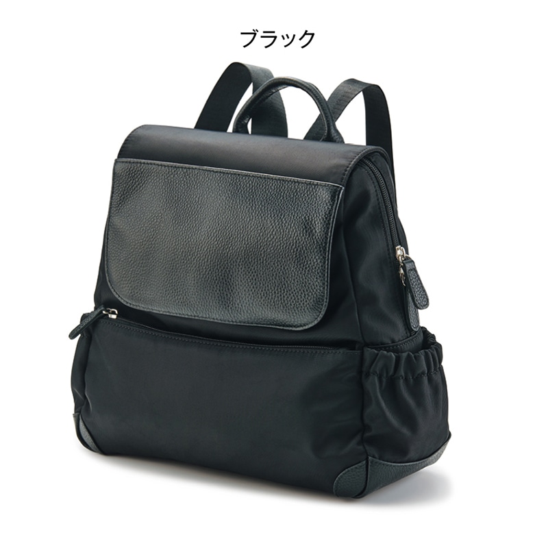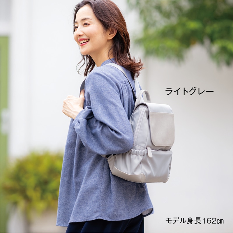 「毎日が発見」レザー使い上品きれいな大人リュック