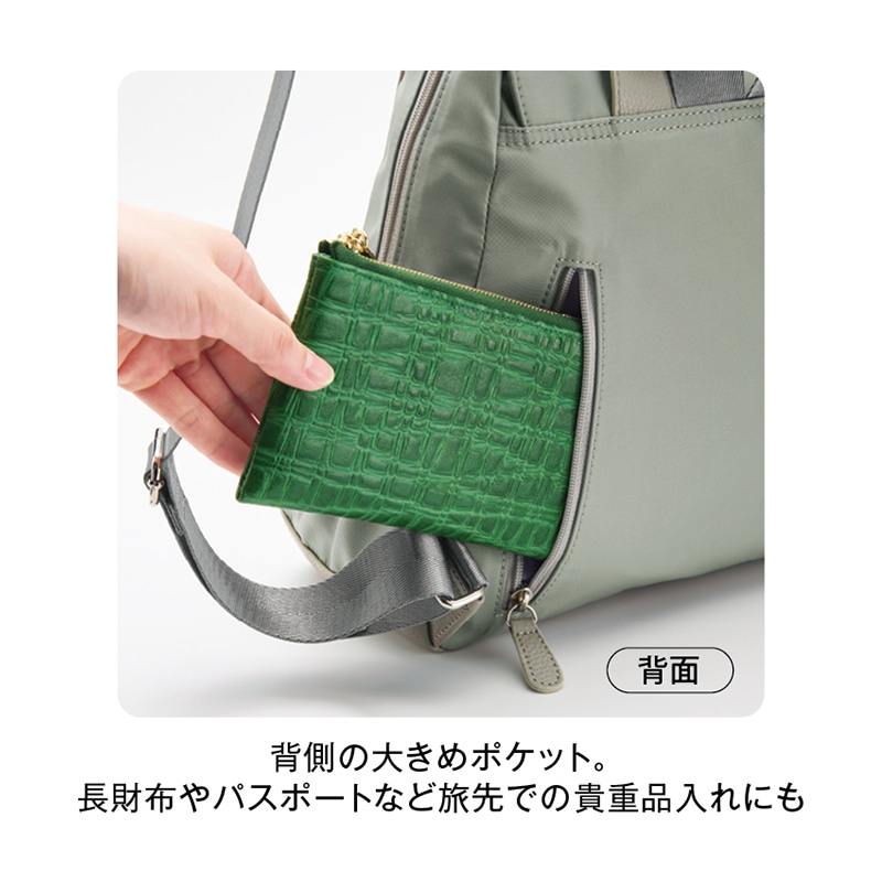 - 主材/布帛部:ナイロン 皮革部:牛革 仕様/かぶせ蓋:マグネット留め メイン収納部開閉:ダブルファスナー式 外側:ゴムギャザーポケット2、ファスナーポケット2 内側:オープンポケット2、ファスナーポケット1 重量(約)/540g サイズ(約)/縦29×横30×マチ12cm 中国製