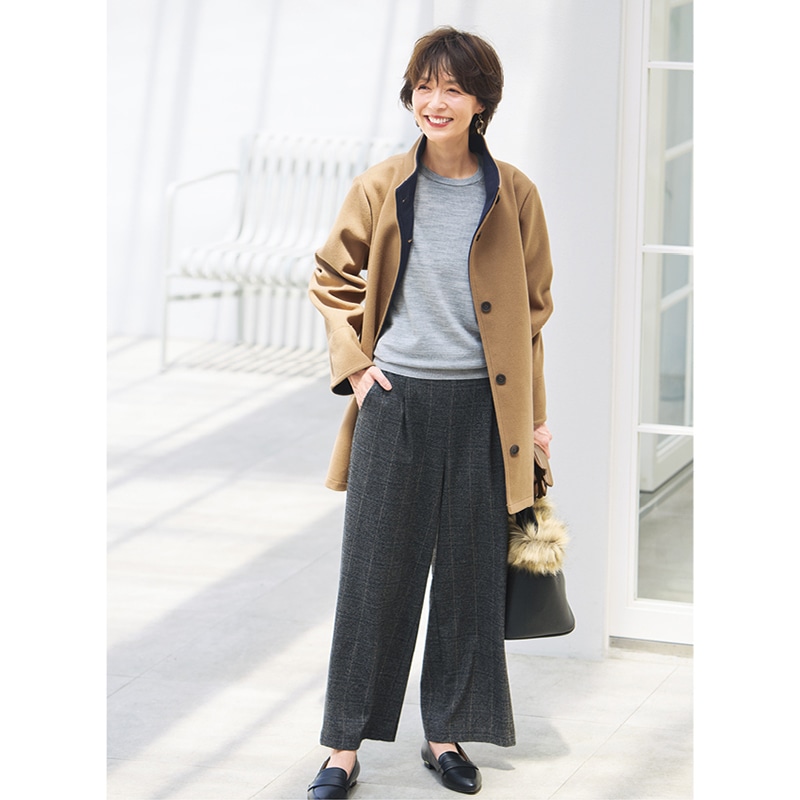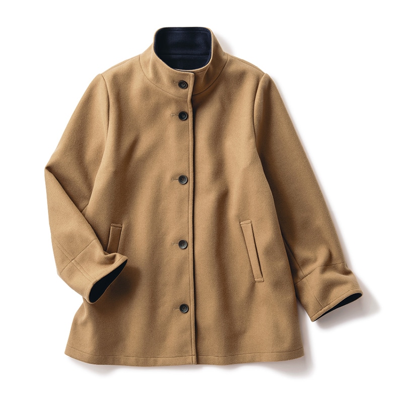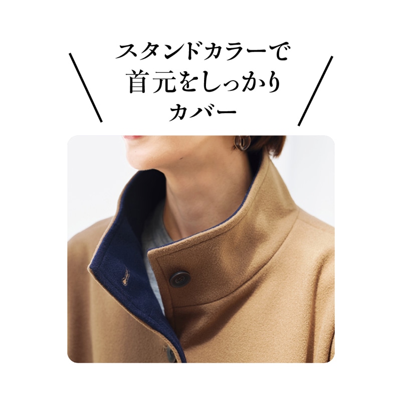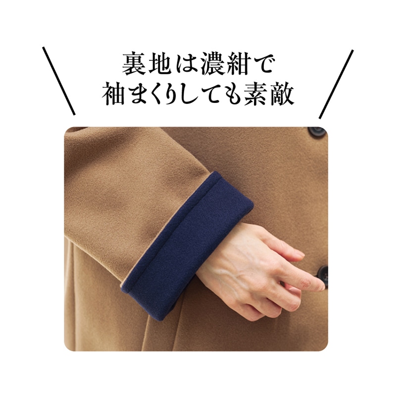 真冬になる前の今の時期や春先にぴったりな軽く羽織れるコート。裏側の配色がコーディネートをキリリと締めてくれます。