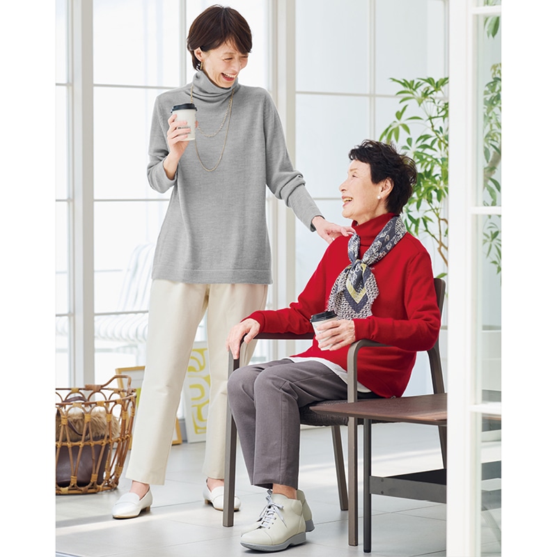イタリアの高級メリノ ウールを使用。「カシ ミヤのような肌触り」 が特徴。チクチクせ ず、家で洗濯できるの も嬉しいポイント。