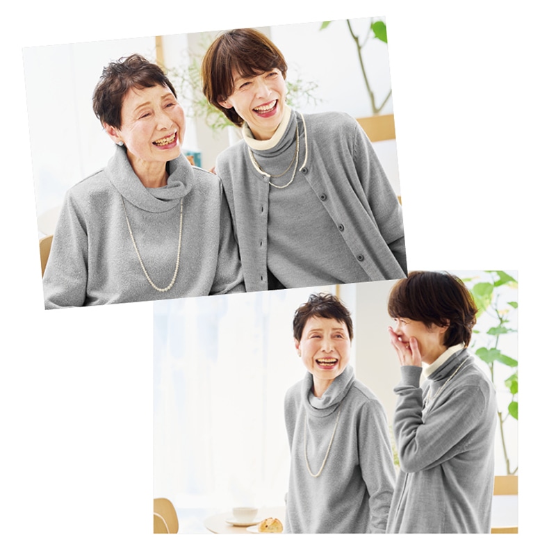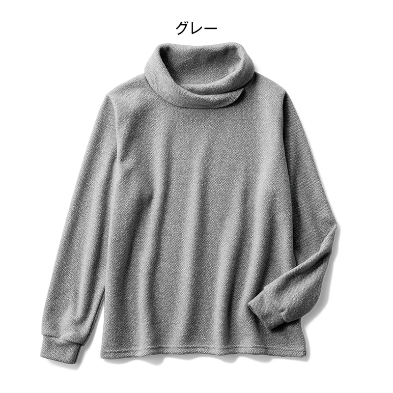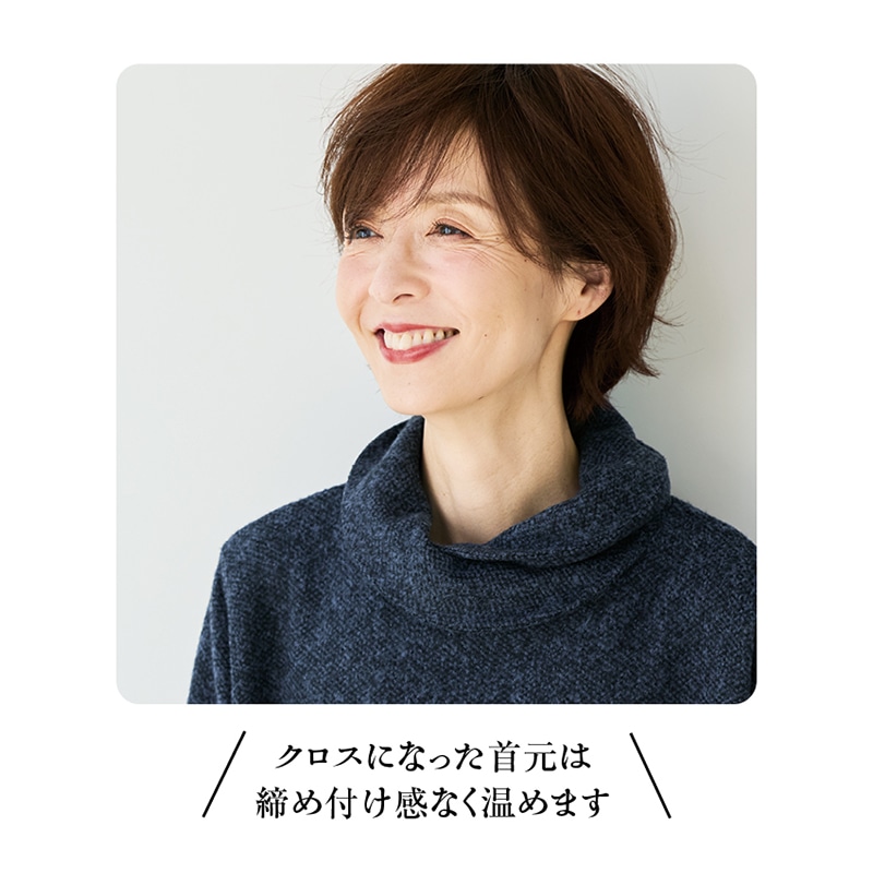 カットソーとニットの中間くらいの軽いニッ トソー。シャツや長袖Tシャツを裾や袖口 から覗かせる重ね着にもおすすめです。