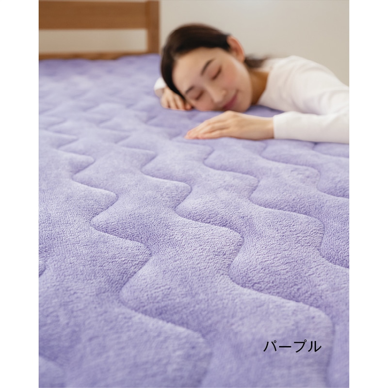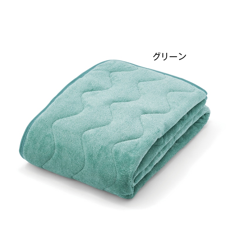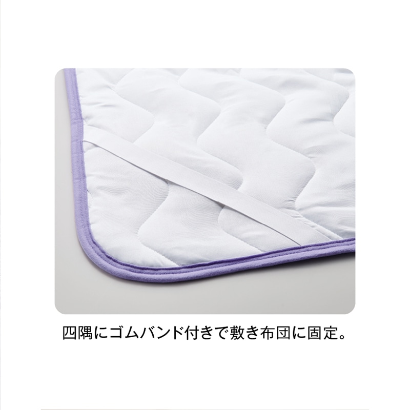 たっぷりの中わたが冷気を 防ぐボリュームのある敷きパッ ドです。吸湿発熱素材が体 から出た湿気を熱に変え、 朝までぬくぬくが続きます。
