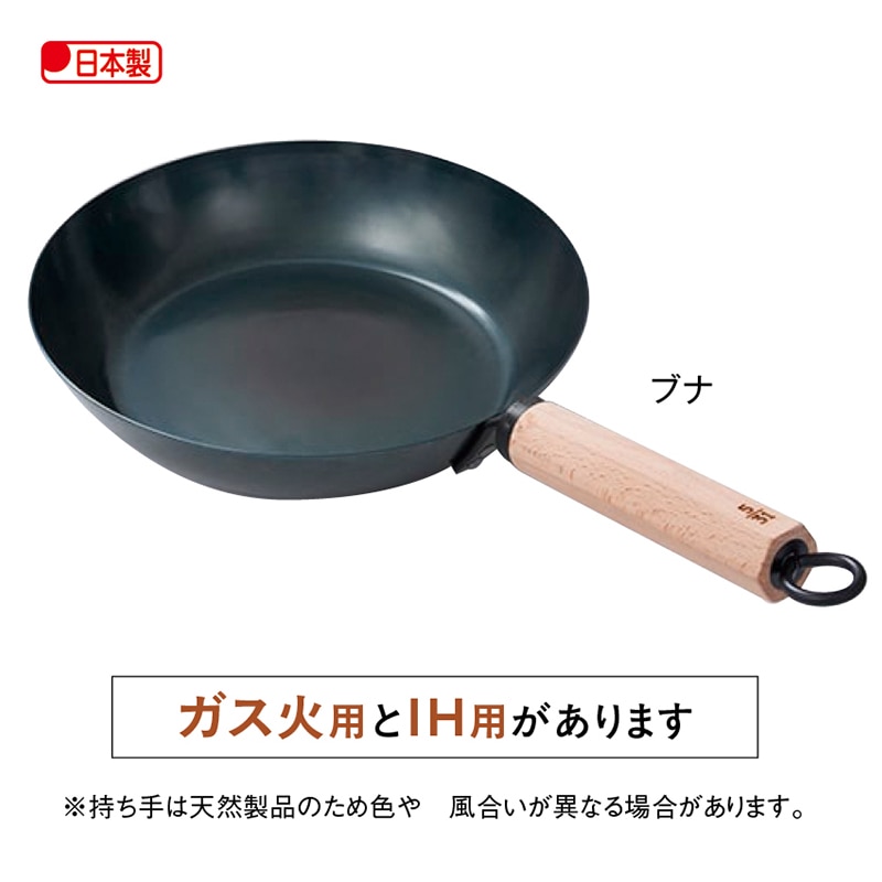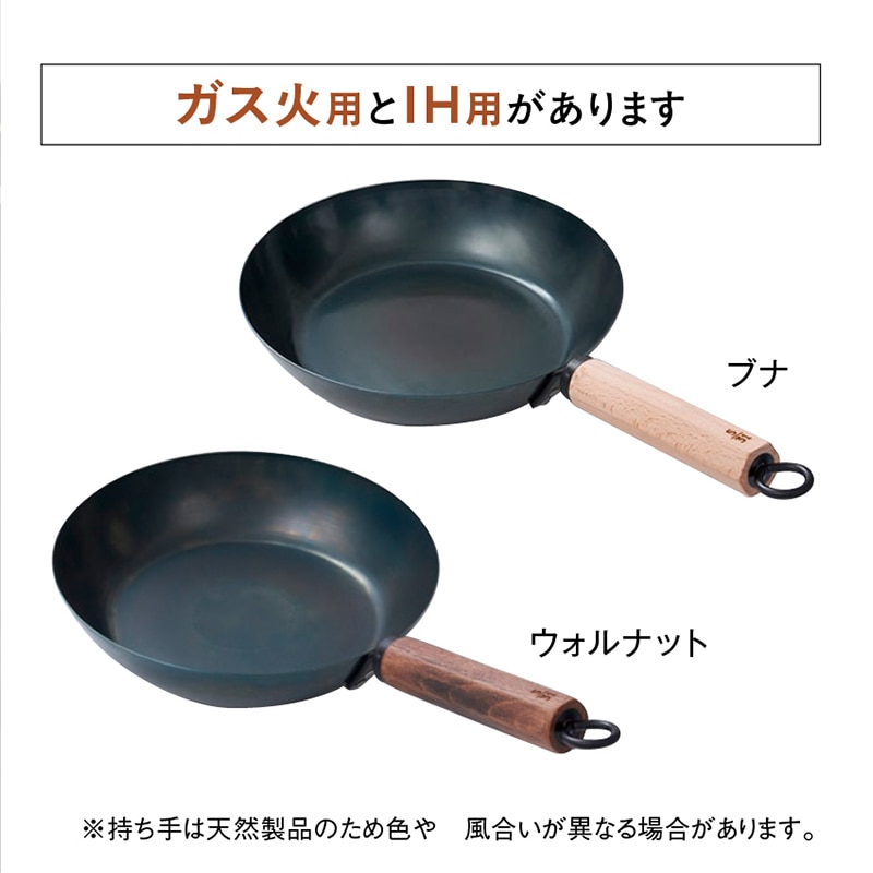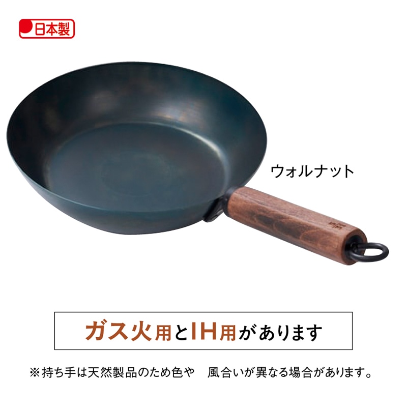 - セット内容/本体、取扱説明書 主材/本体:鉄製(普通鋼板) 表面加工:ハードテンパー加工 持ち手:木製(天然木) 重量(約)/ガス火用:694g IH用:1030g サイズ(約)/幅26×奥行45.5×深さ5㎝ 日本製 ※製品により、色や風合いが異なる場合があります。コゲやサビを抑える加工済みですが、鉄製により錆びますのでお手入れにはご注意ください。