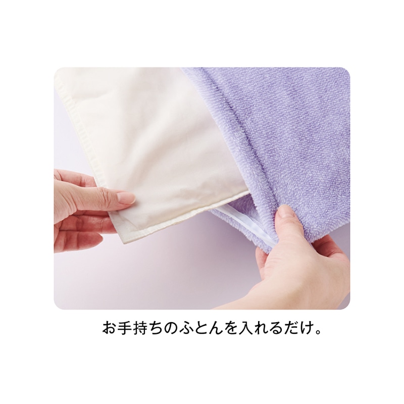 肌に当たるえり部分と内側 がマイクロファイバーになってい る掛けふとんカバーです。地 糸に吸湿発熱素材を入れるこ とで暖かさが向上。毛布と違 い重ねた布団がずれて冷える 心配もありません。