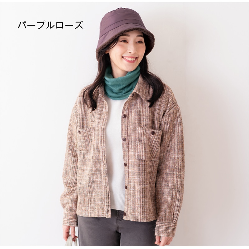 人気のバケット型帽子は、防寒に加えて小顔見せ効果あり