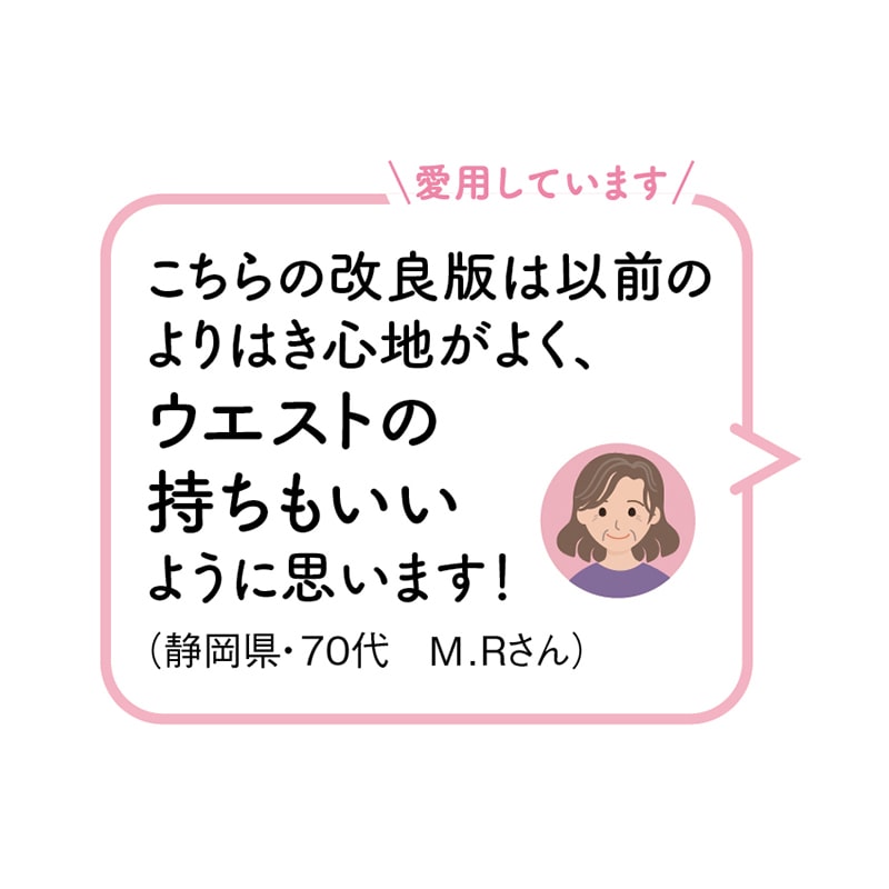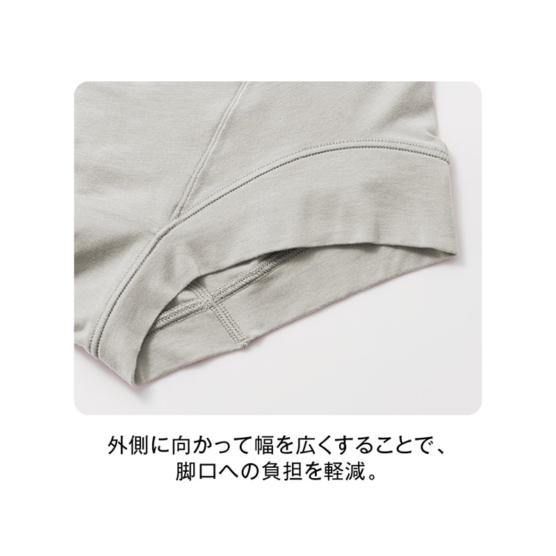 肌触りよく締め付けず、はいていないような心地よさはそのままに、綿の混紡率を上げることでウエストの伸び切りを軽減。ウエストのフィット感が長続きするよう改良しました。