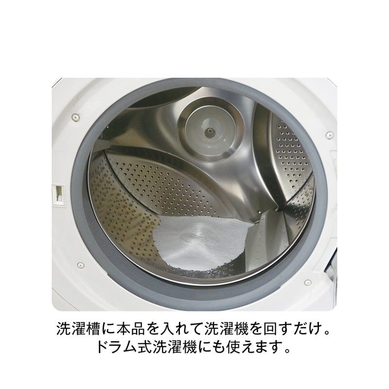 洗濯槽に入れるだけ。業務用の洗浄技術で、長くかかっていた洗濯槽の洗浄がわずか20分で完了します。酸素系洗浄剤なので肌や衣類、環境にも優しく安心。除菌&消臭効果もあり、4カ月間お掃除不要です。