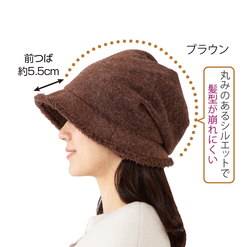 丸みのあるシルエットで髪型が崩れにくいキャスケット。ふわもこのボアで頭を冷えから守ります。つばの裏にはボアの耳当て付き。深くかぶれてすっぽりあったか。