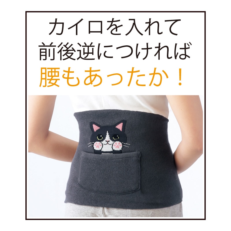 ポケットからひょっこり顔をだすにゃんこが可愛すぎる腹巻。もちろんポケットにはカイロを入れることが可能です。お気に入りのにゃんこを選んでおなかを冷えから守ってください。