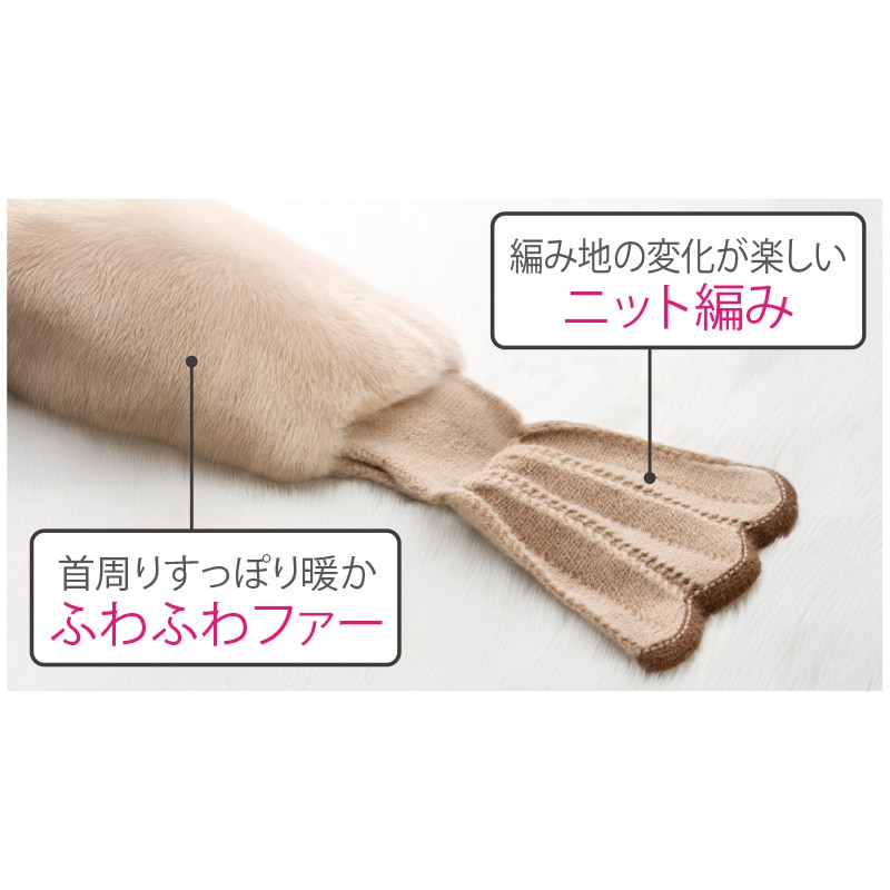 適応サイズ(約)/首まわり:48cmまで 素材/ニット部:アクリル40%、ポりエステル30%、ナイロン30% ファー部:ポリエステル100% 中国製 洗濯機(ネット使用)
