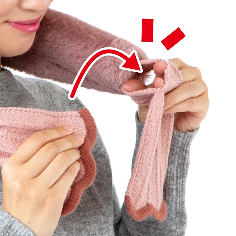 ループ穴に通すだけ!簡単着脱&ズレにくい。スッと通すだけなので、不器用さんでも簡単にお洒落が叶います。 サッと巻くだけで暖かく、華やかさもプラス。つけても外してもかさばりにくい、ほどよいサイズです。