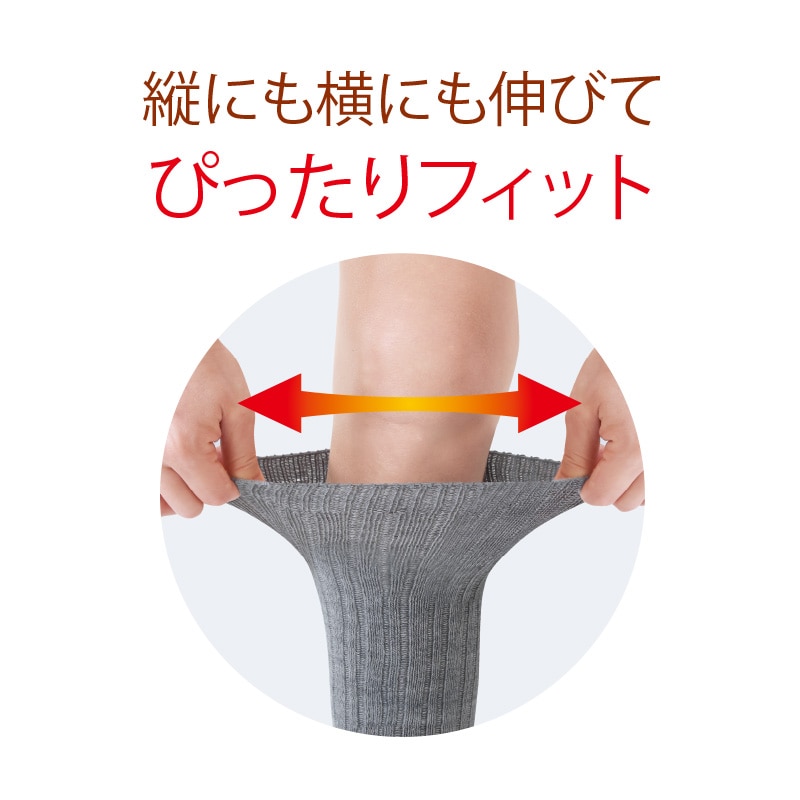 足首から太ももまでしっかりカバーできるロングサポーターです。縦にも横にも伸びてぴったりフィット。吸湿発熱繊維を使用。かかとにかぶせれば、足首もあったか。冷える足元の救世主です。