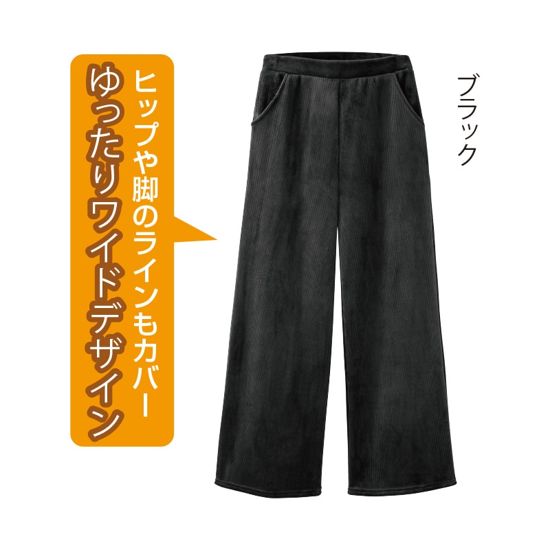 コーデュロイ素材の裏ボアワイドパンツ