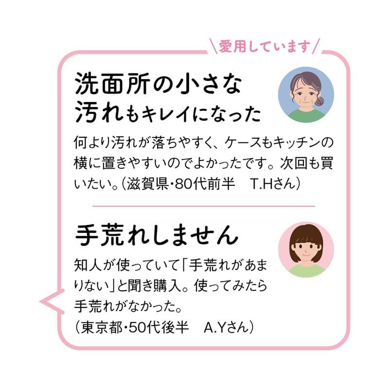キッチンやお風呂、家具などさまざな場所や物に使え、化学合成成分無添加で肌や環境にやさしいのも特徴です。