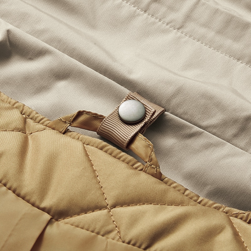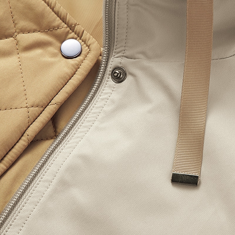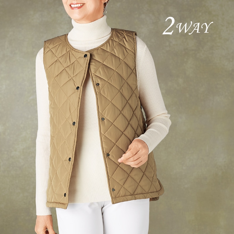 - ベストだけ、コートだけ、両方重ねて。 季節に合わせて着こなしアレンジを楽しんで。 やや光沢のあるコートとキルティングのベストが絶妙にマッチ。 ミドル丈のすっきりシルエットが魅力。